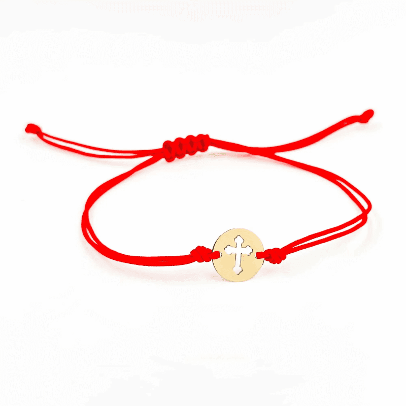 Această brățară șnur cu pandantiv cruciuliță și bănuț decupat din aur galben 14K este o bijuterie care combină frumusețea simplă cu simbolistica profundă. Cruciulița, simbol al credinței și protecției, împreună cu bănuțul decupat, reprezintă un accesoriu elegant și spiritual. Cu dimensiuni de 10×10 mm și o greutate de 0.21g, această brățară este perfectă pentru a adăuga o notă de rafinament și spiritualitate fiecărei ținute.