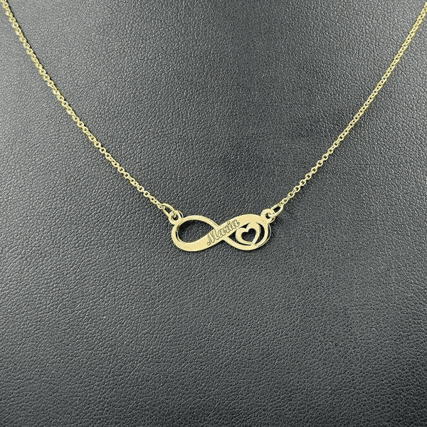 • Acest lănțișor delicat din aur galben 14K îmbină simbolismul etern al infinitului cu căldura și dragostea reprezentată de o inimă, creând astfel un pandantiv cu adevărat special și personalizabil.