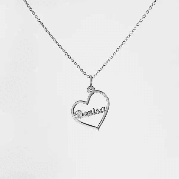 Lantisor cu Nume Medalion cu Inimioara Aur ALB 14k – CAG35
