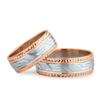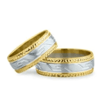 - Verighetele din aur alb și galben de 7mm impresionează prin combinarea armonioasă a culorilor.