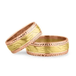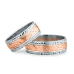 - Modelul cu cercuri și linii subtile adaugă unicitate și rafinament acestor verighete speciale.