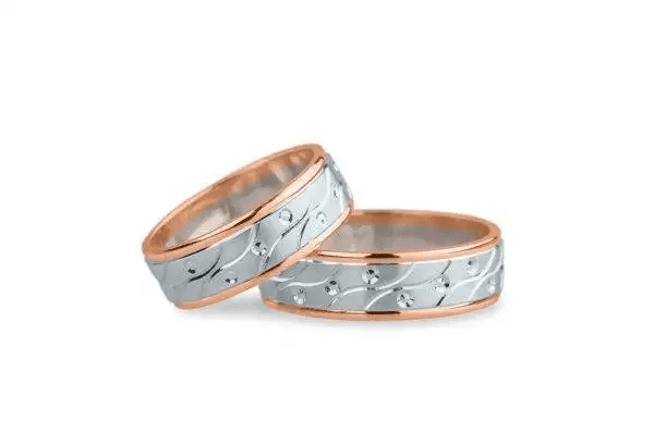 - Verighete Aur 2 Culori Cu Linii Curbe Si Cercuri
