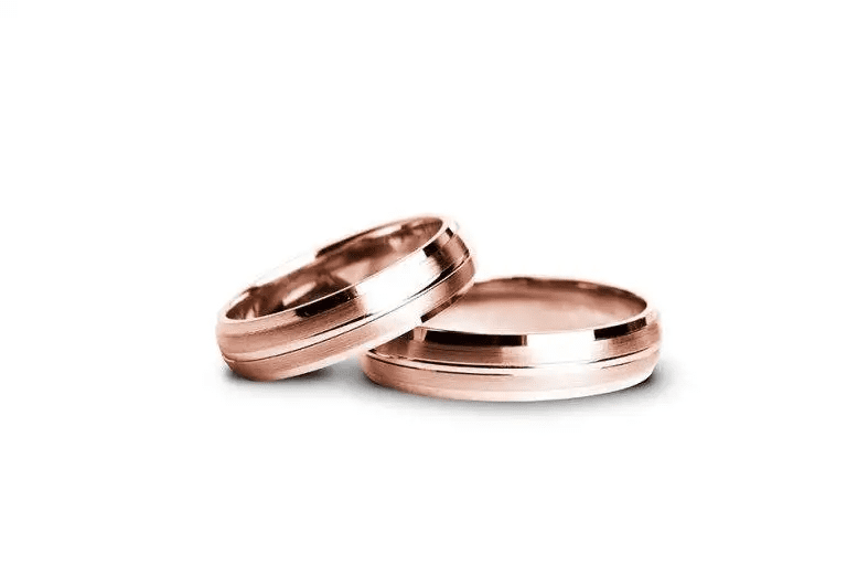 • Verighete aur roz cu finisaj mat și muchii lucioase de 5 mm îmbină rafinamentul și contrastul într-un mod subtil și elegant.
